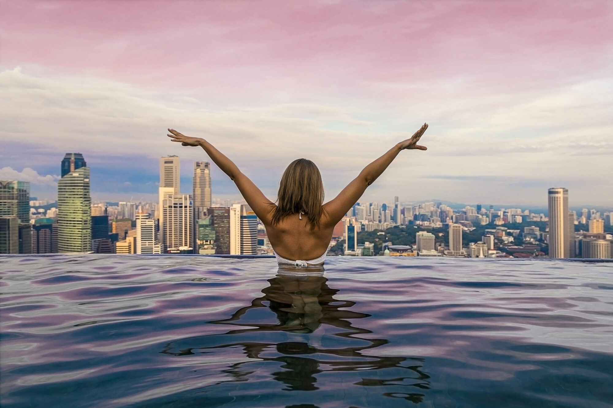 Дневное же пекло местная золотая молодежь коротает, потягивая коктейли в бассейне на крыше отеля Marina Bay Sans Hotel (MBSH) – главной достопримечательности и символе города, повторяющем формы межгалактического корабля из голливудских фильмов в жанре Science Fiction.